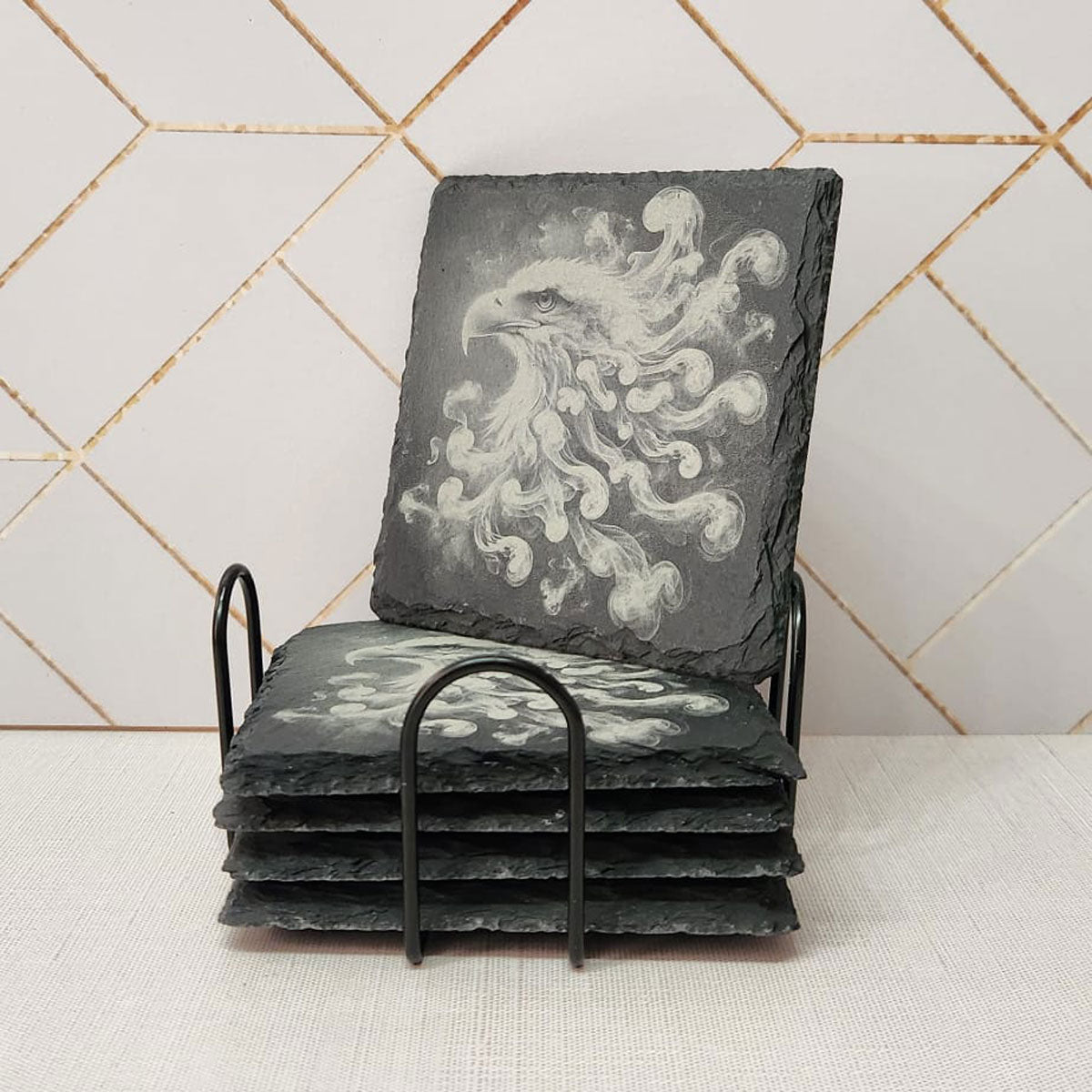 Say goodbye to unsightly drink rings on your table. These coasters, with their simple yet stylish design of the US bald eagle, are not just decorative but also highly functional. They're perfect for gifting, adding a touch of elegance to any setting.